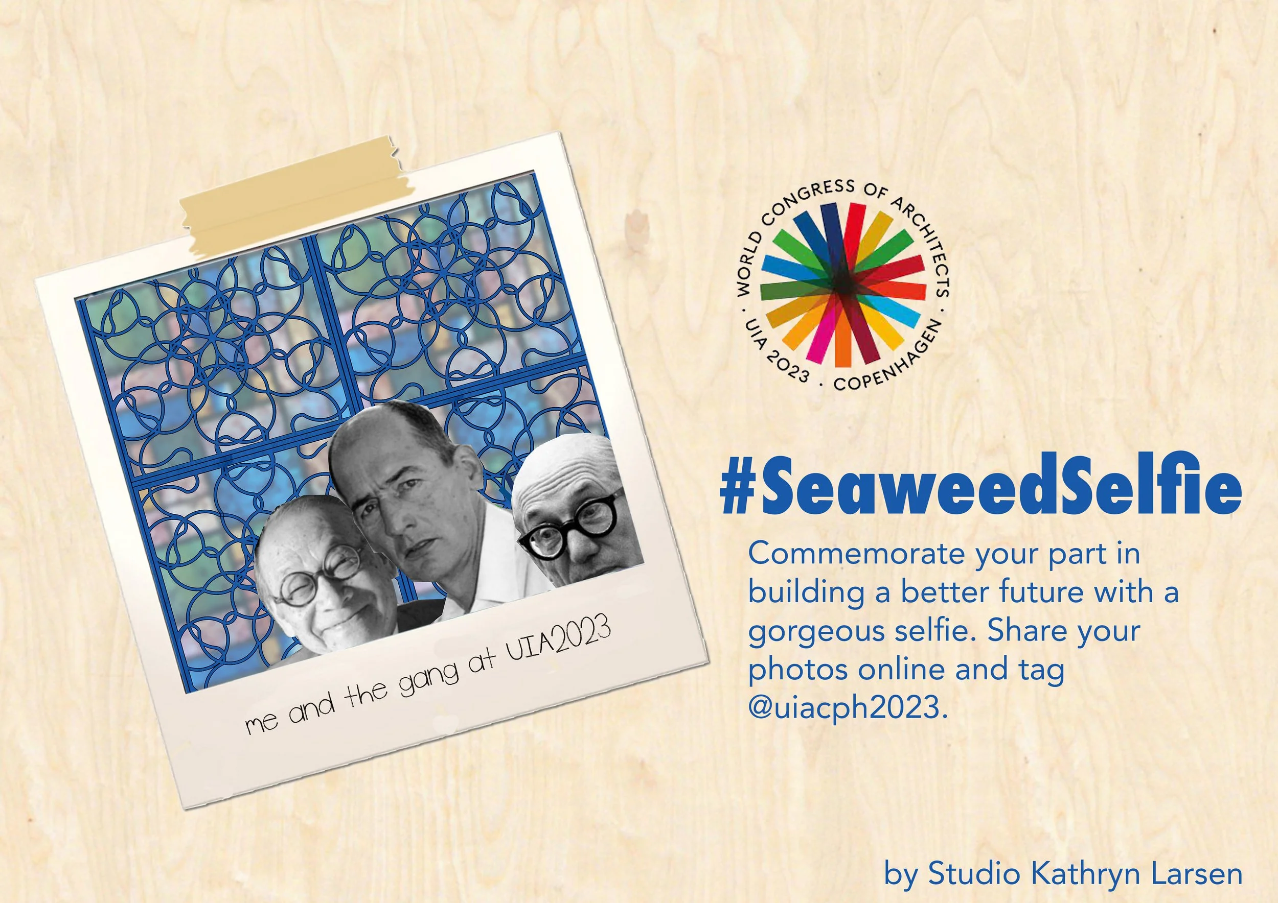 In Larsen’s practice, full-scale prototypes function as active research tools that combine material testing with public engagement. The seaweed selfie wall - a modular installation developed for UIA World Architecture Congress 2023 served not only to test seaweed-based binders, surface treatments, and assembly logic, but also to examine how people interact with emerging biomaterials.